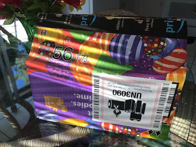 It is a colorful box. I get emails from Amazon too, or my USPS letting me know I had a delivery. I had to pack my camera batteries separate in my airline check on, they have to go through security separately too. Recently a fire was started from two batteries rubbing together on an airplane, that is scary. Take care, enjoy your day!
